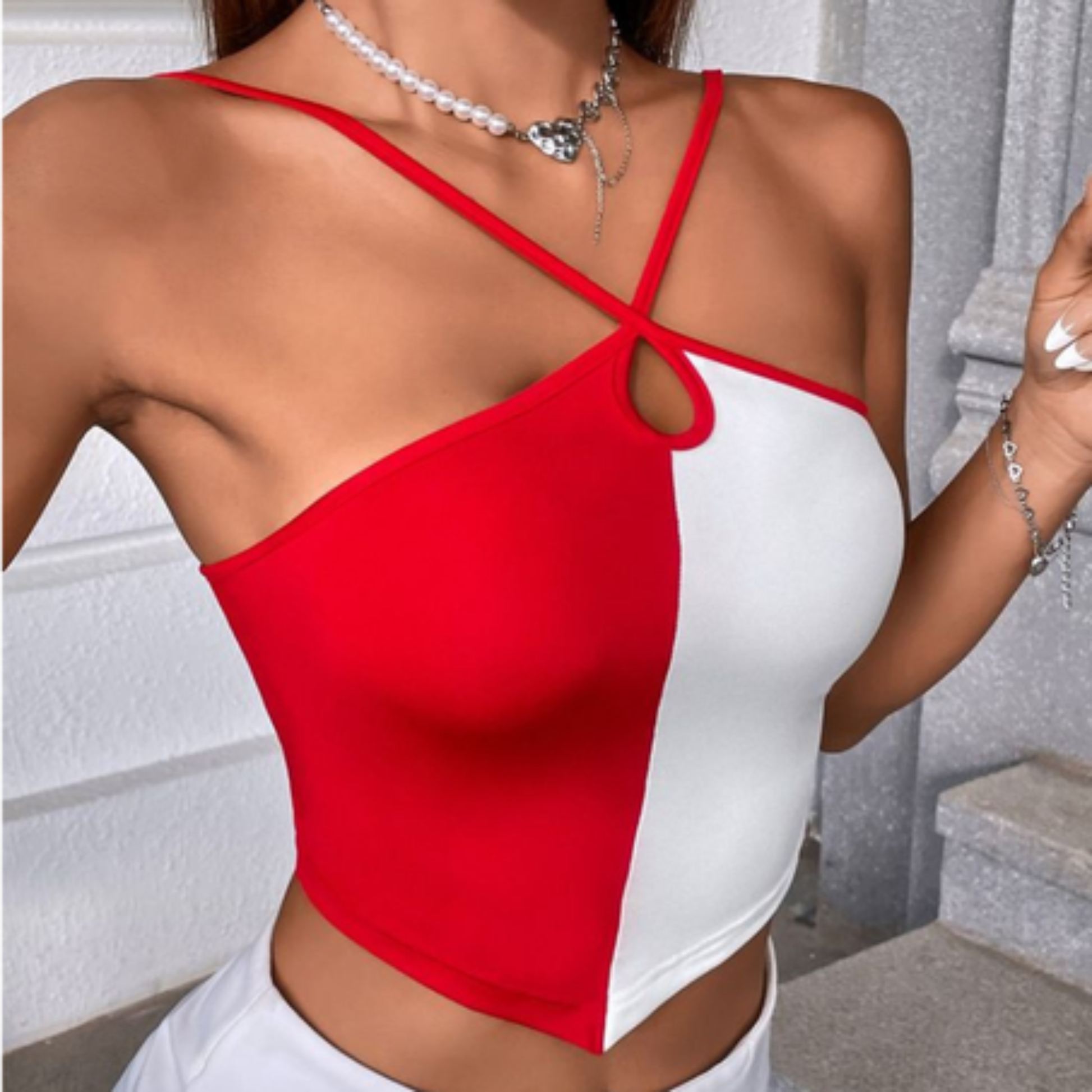 Embrassez l'audace avec ce top caraco aux blocs de couleurs rouge et blanc qui ne passe pas inaperçu. Son design géométrique affirmé crée un contraste saisissant, parfait pour celles qui osent se démarquer. Coupe épurée et moderne, ce caraco devient la pièce maîtresse de vos looks les plus tranchants. À porter seul pour un impact maximal ou en superposition pour plus de dimension. Un incontournable pour exprimer votre style sans compromis.