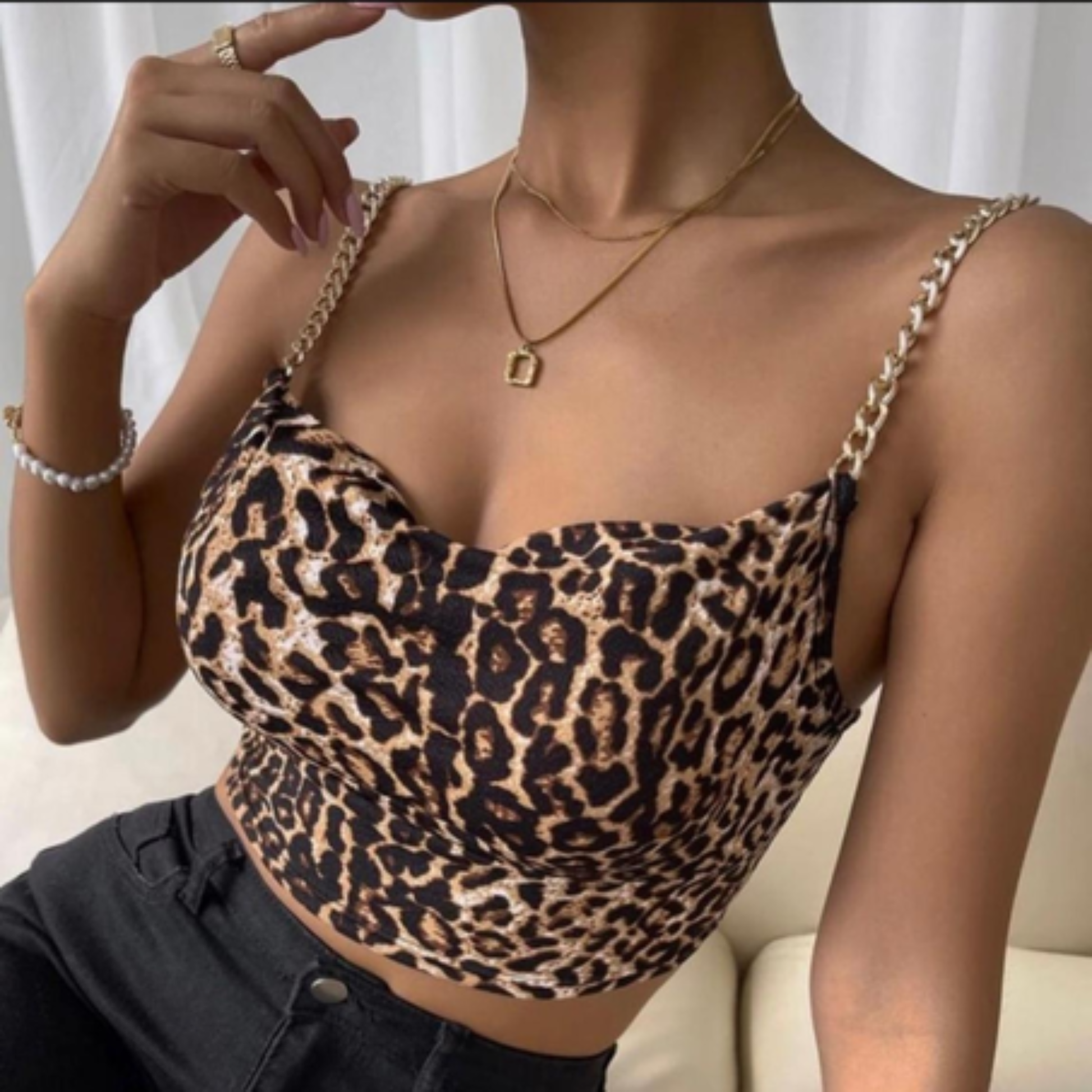 Embrassez votre côté sauvage avec ce top court débardeur qui capture l'essence du style félin. L'imprimé léopard audacieux se marie parfaitement avec les bretelles à chaîne sophistiquées, créant un look qui ne passe pas inaperçu. Parfait pour affirmer votre personnalité, ce débardeur transforme chaque tenue en déclaration de mode. Portez-le avec assurance et laissez votre allure parler d'elle-même.