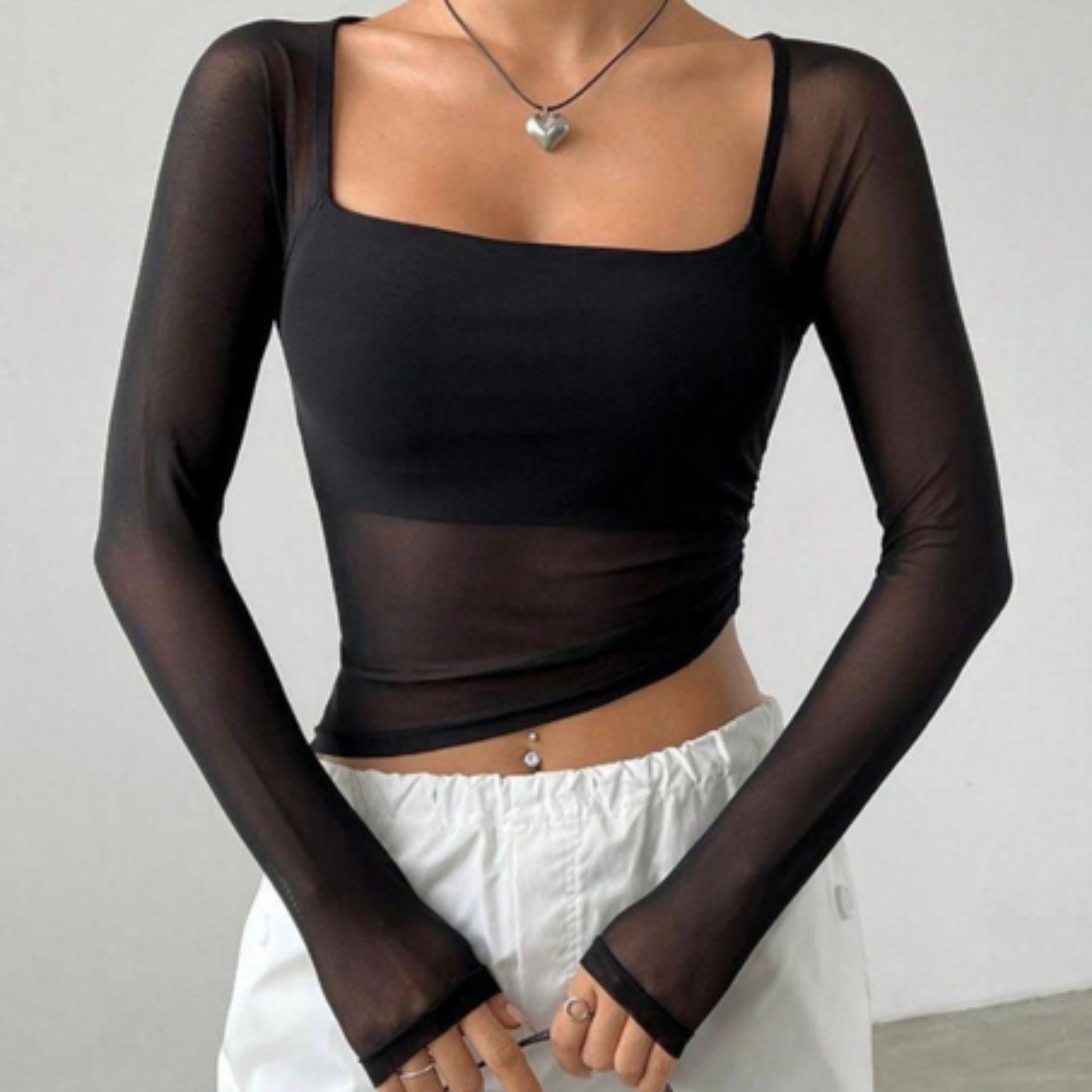 Épousez l'audace avec ce top noir court qui défie les conventions. Son encolure carrée affirmée encadre élégamment vos épaules tandis que l'ourlet asymétrique crée une silhouette moderne et captivante. Parfait pour celles qui osent se démarquer, ce pièce incontournable se réinvente à chaque port. Associez-le à vos pièces favorites pour un look qui respire la confiance et le style.