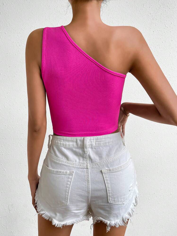 Embrassez l'audace avec ce top rose court aux lignes asymétriques captivantes. Son design avant-gardiste joue sur les contrastes, tandis que le détail de lien anneau ajoute une touche de sophistication rebelle. Parfait pour celles qui refusent de passer inaperçues, ce pièce transforme chaque silhouette en déclaration de style. Osez la différence.