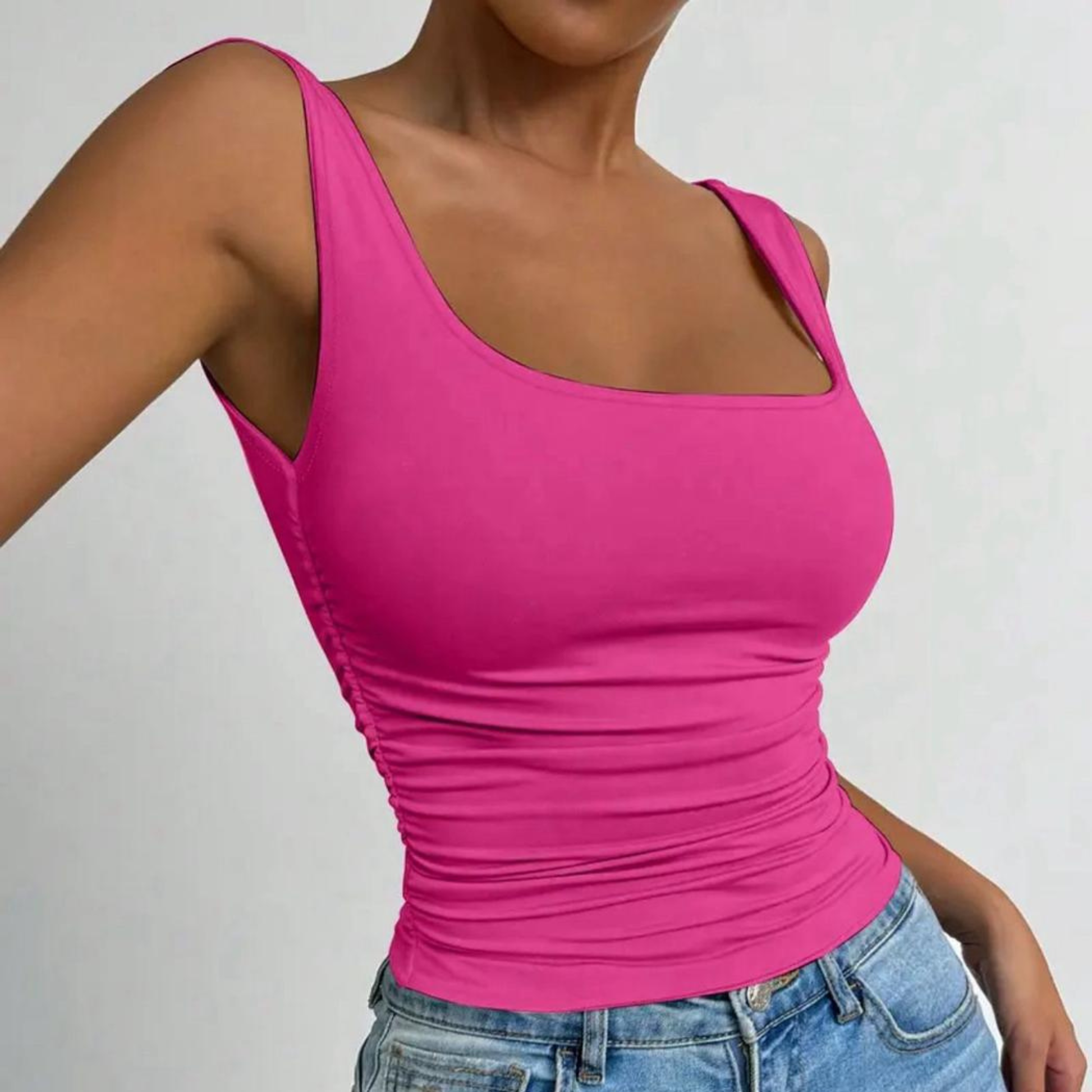 Libérez votre style avec ce débardeur rose audacieux, parfait pour affirmer votre présence. Coupe sans manches épurée qui met en avant vos épaules et votre silhouette. Idéal pour les chaudes journées d'été ou à superposer selon vos envies. Teinte rose vibrante qui s'adapte à tous les teints. Pièce incontournable pour une garde-robe moderne et dynamique.